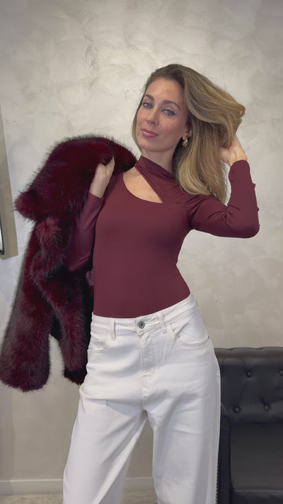 BODY CON PARTICOLARE TAGLIO ALLO SCOLLO COL. BORDEAUX