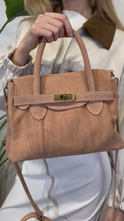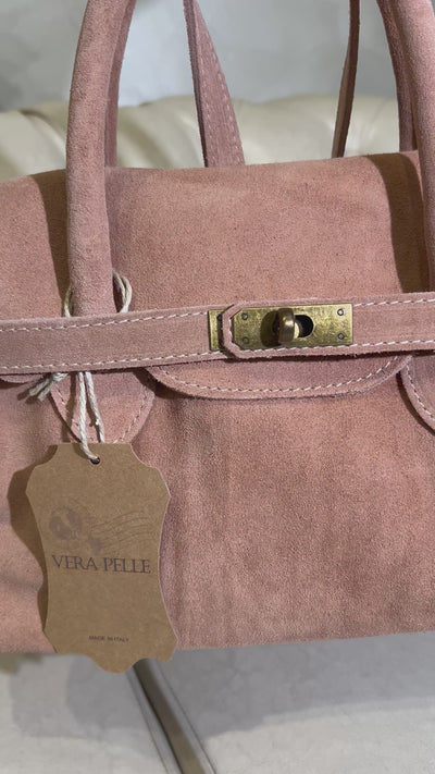 BORSA IN VERA PELLE SCAMOSCIATA CON CHIUSURA METALLICA COL.CIPRIA