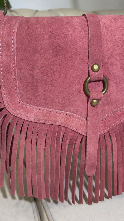 BORSA IN VERA PELLE SCAMOSCIATA CON FRANGE E TRACOLLA COL.CIPOLLA