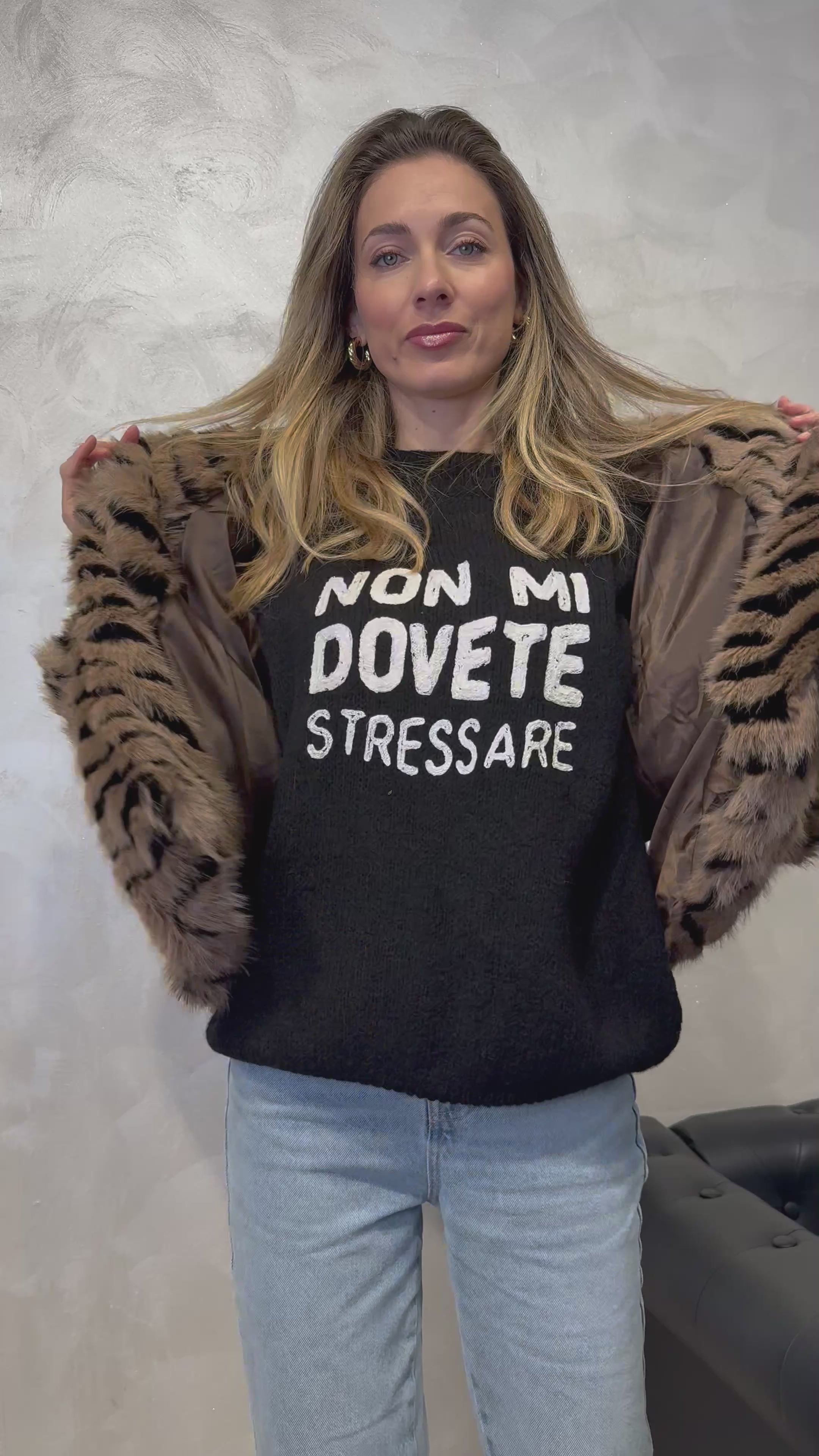 Un capo statement che fonde audacia e raffinatezza. Le nuance dei colori moro, nero e beige creano un effetto visivo deciso, mentre il taglio avvolgente dona comfort e stile. Perfetta per chi ama distinguersi con eleganza.