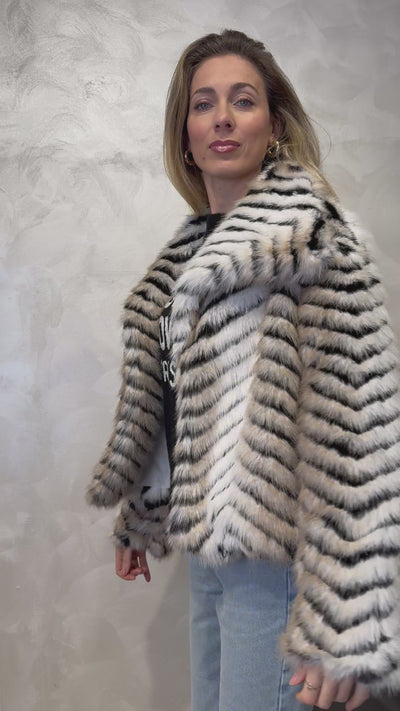 Ecopelliccia con disegno effetto resca bicolor