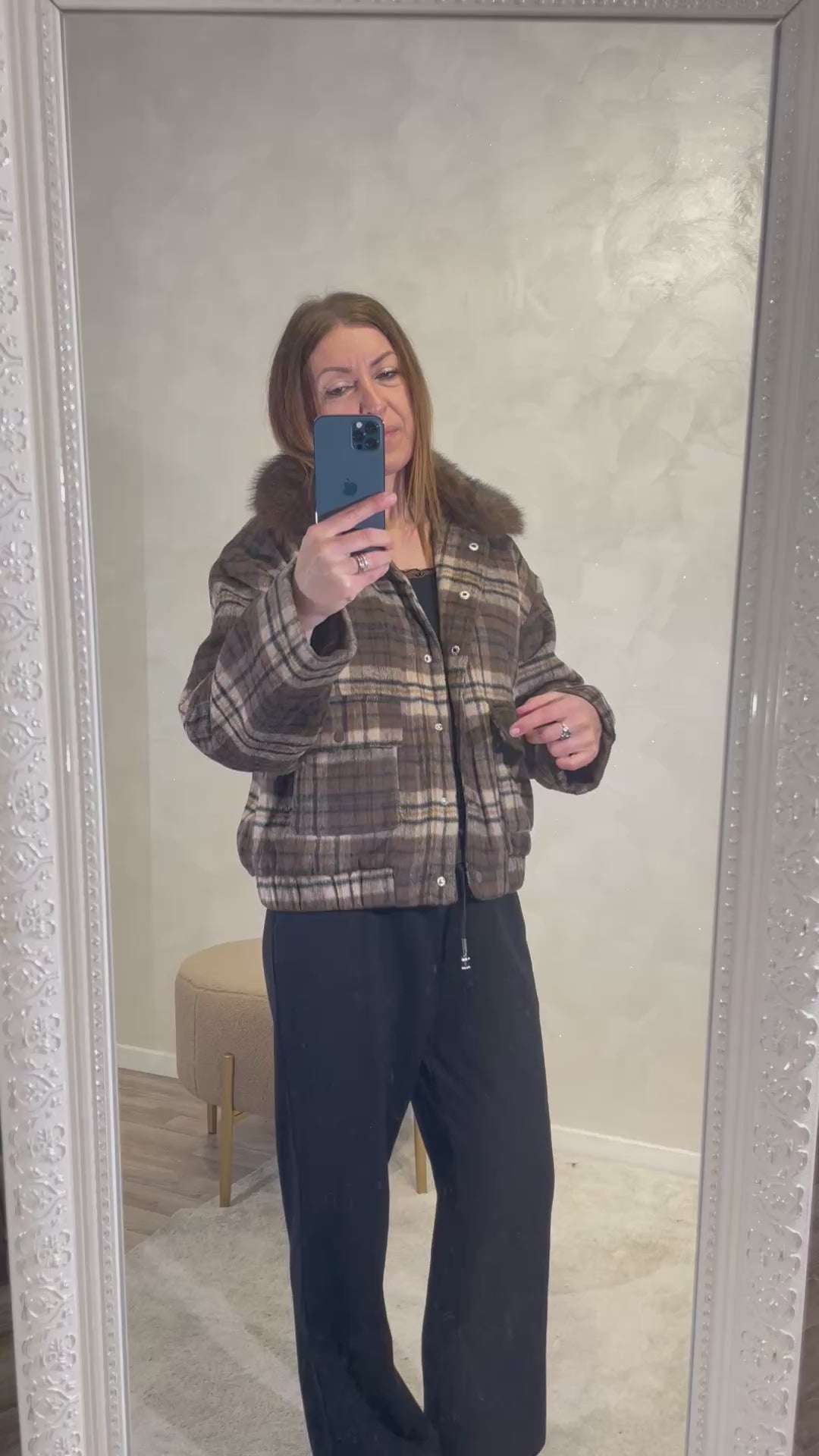 Giacca in tessuto check con collo in Eco-pelliccia – Moro