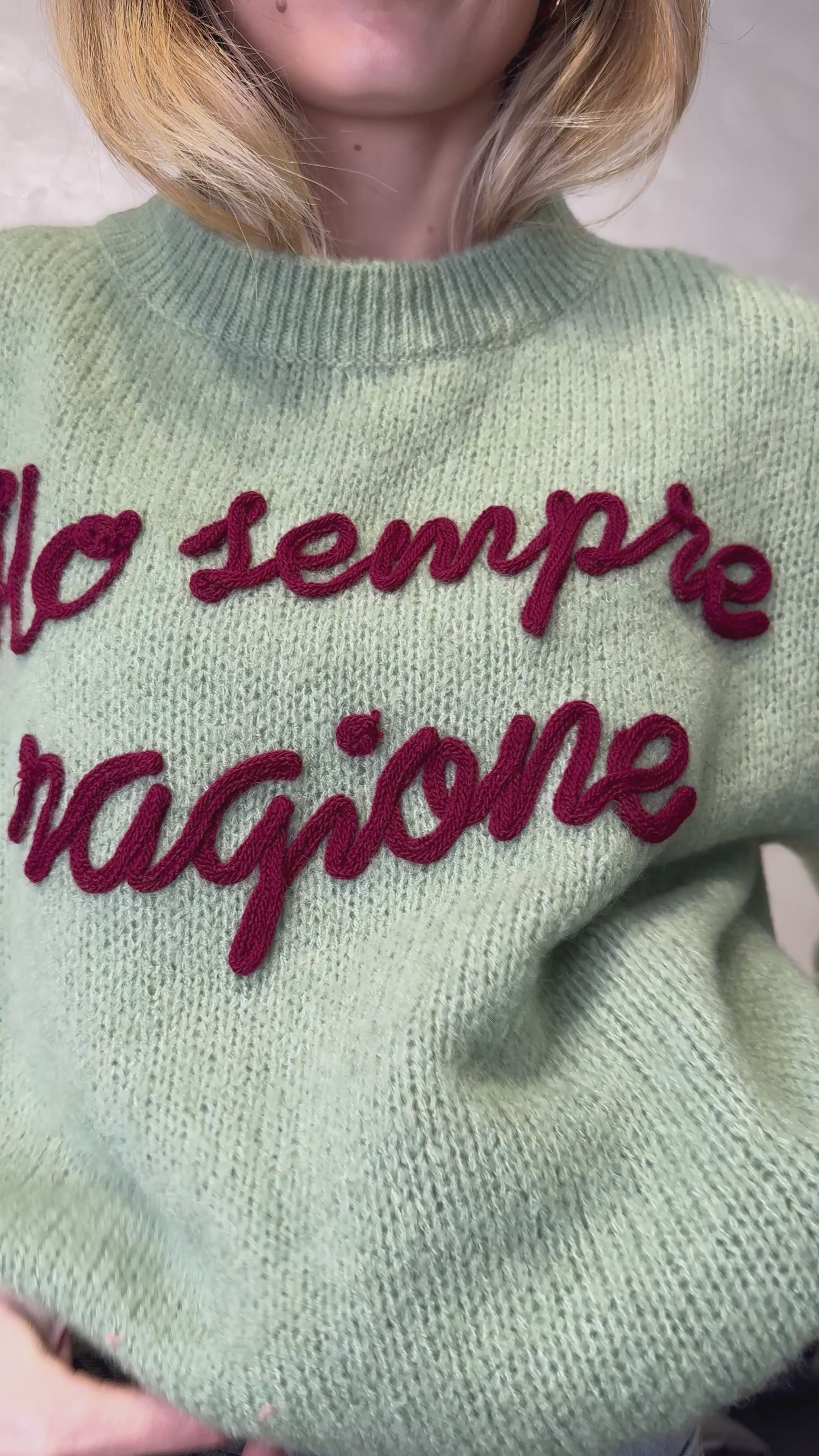 MAGLIONE CON RICAMO "HO SEMPRE RAGIONE" COL.VERDE