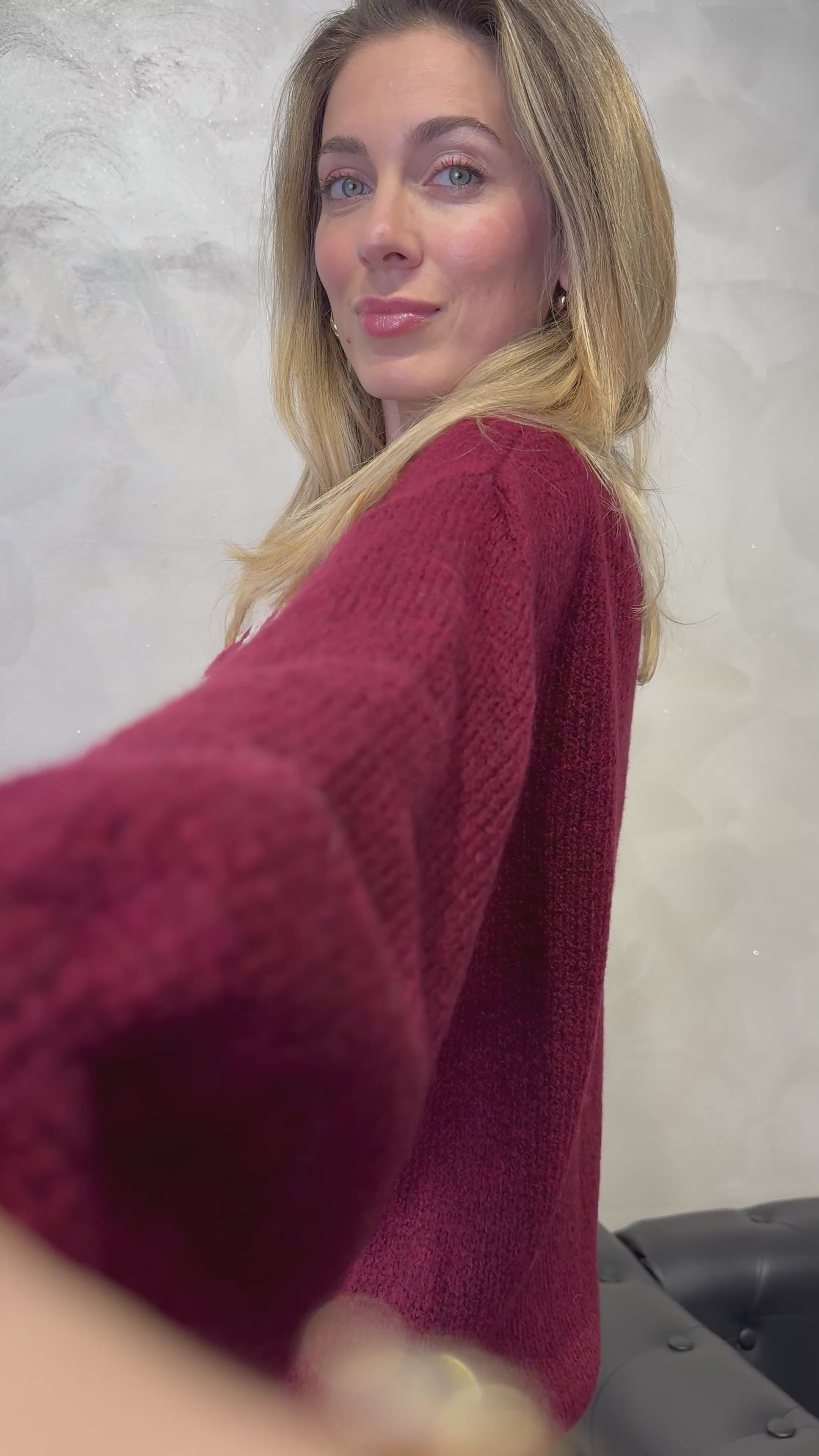 MAGLIONE CON RICAMO "NON MI DOVETE STRESSARE" COL. BORDEAUX