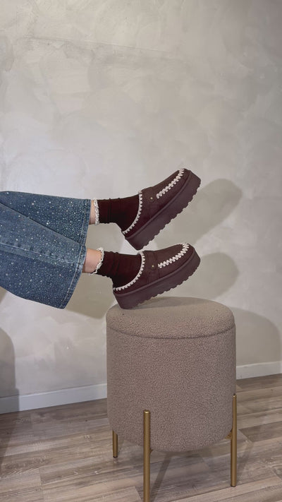 Dettagli: Superficie in simil camoscio, cuciture panna a vista, borchia metallica laterale, suola robusta in gomma.
