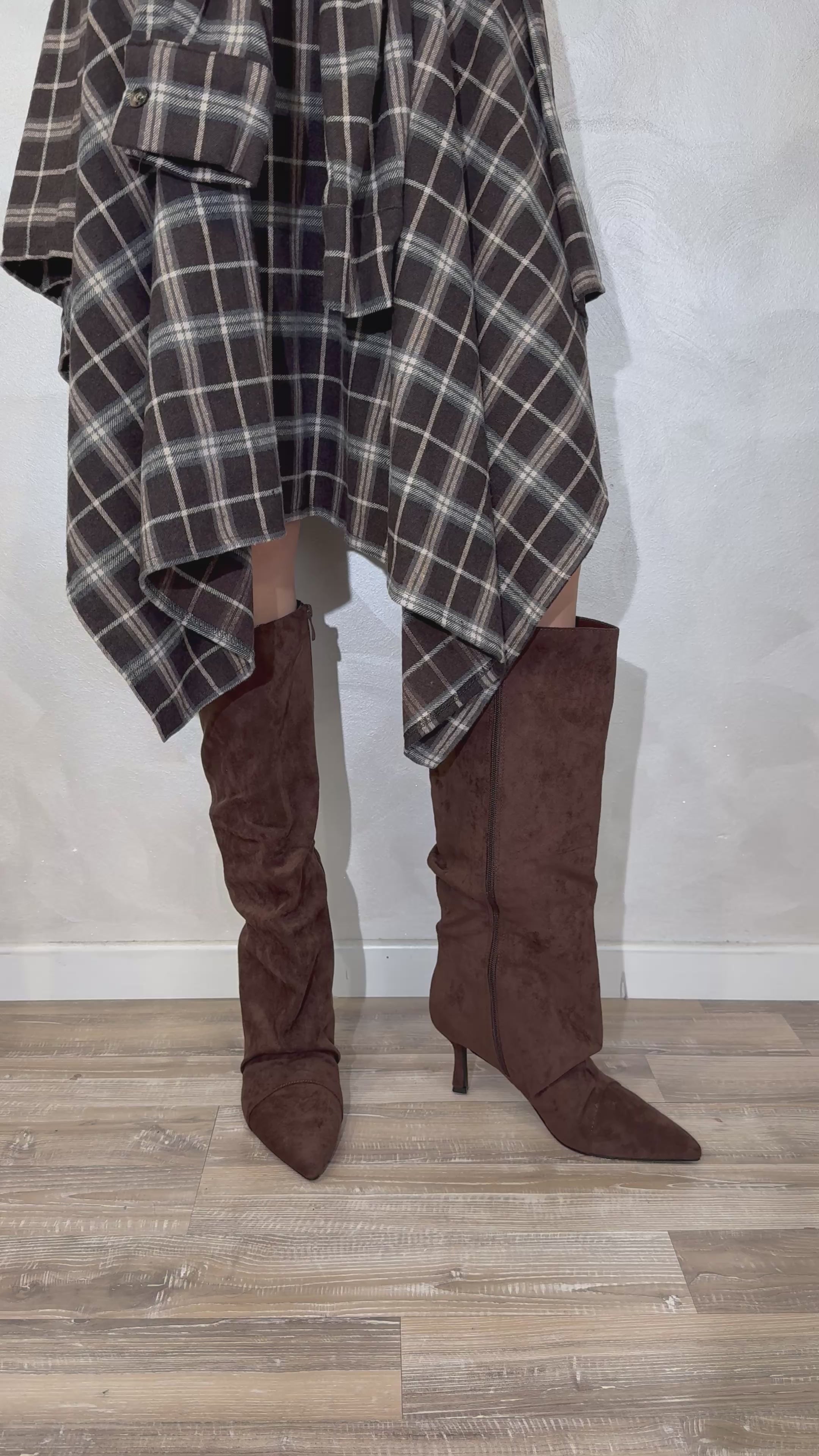 Stivale alto in eco camoscio con linea pulita e struttura flessibile. Comfort avvolgente e stile naturale.